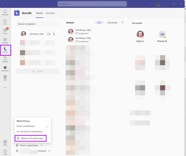 - In der PC-Version finden Sie in der mittleren Spalte unten entweder Nicht weiterleiten oder An Voicemail weiterleiten. Öffnen Sie dort das Drop-Down-Menü.