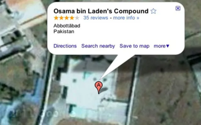 Das Haus weist starke Ähnlichkeiten zu dem Gelände auf, dass der US-Präsident in seiner Rede beschrieben hatte. Auf Google Maps ist demnach ein Gebäude zu sehen, dass von hohen Mauern umgeben ist. Die Google-Maps-Nutzer tauften den Ort auf «Osama bin Laden's Compound, Abbott?bad, Pakistan». Es ist aber offensichtlich das falsche Haus. In der gestrigen Tagesschau präsentierte das Schweizer Fernsehen ein anderes Gebude. Dieses deckt sich auch mit Bildern, welches in Wikipedia und anderen Stellen veröffentlicht wurden. Die Bilder auf Google Earth sind offenbar veraltet, auf aktuelleren Satellitenaufnahmen der Villa sind weitere Gebäude in unmittelbarer Nähe zu sehen.