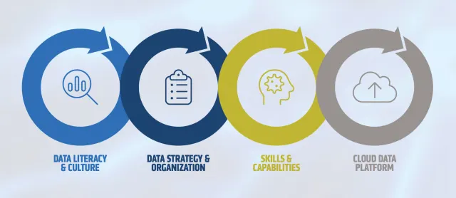 Doch unabhängig davon, welche Technologien und Anwendungen in Zukunft noch kommen werden – nur ein Unternehmen, das Daten in den Mittelpunkt seiner Organisation stellt und alle Prozesse auf deren optimale Nutzung ausrichtet, kann sich zukunftsfähig aufstellen. Der Weg zum Data-driven Enterprise ist allerdings ein umfangreicher Prozess, der weit über die reine Implementierung von Technologien hinausgeht und vier wichtige Handlungsfelder umfasst.