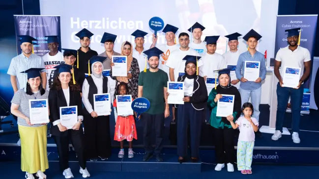 Seit 2018 unterstützt Acronis mit einem kostenlosen Schulungsprogramm Migrantinnen und Migranten in Schaffhausen beim Einstieg in die IT-Welt. Mehr als 130 Teilnehmende profitierten bisher von praxisnahen Kursen – mit dem Ziel, Integration durch Bildung zu fördern.