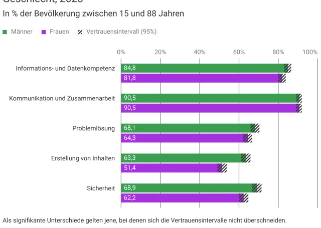 Die Internetnutzung und deren Häufigkeit unterscheiden sich in der Schweiz signifikant je nach Geschlecht. Das jedoch vor allem bei Menschen ab 60 Jahren.