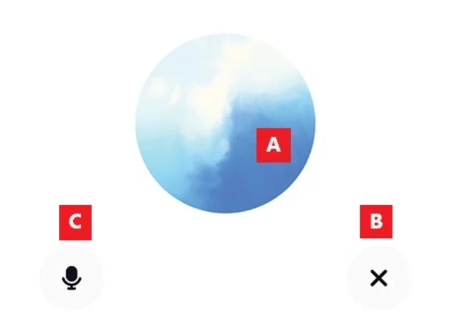 Halten Sie die Aktionstaste etwa eine Sekunde lang gedrückt. Die App startet. Sobald der blaue Ball eingeblendet wird, Bild 3 A, ist ChatGPT für die Spracheingabe bereit. Mit einem Tippen auf die unteren