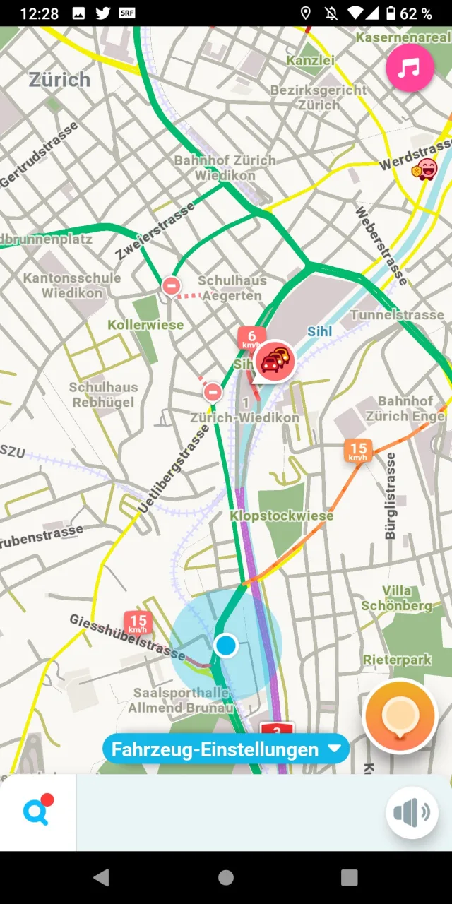 Nutzer können beispielsweise Bauarbeiten oder Staus melden. Dies wird Ihnen auf der Karte mit einem Symbol angezeigt. Als Beispiel eine Staumeldung in Zürich Wiedikon in der Mittagszeit. Tippen Sie auf das Symbol mit den Autos.