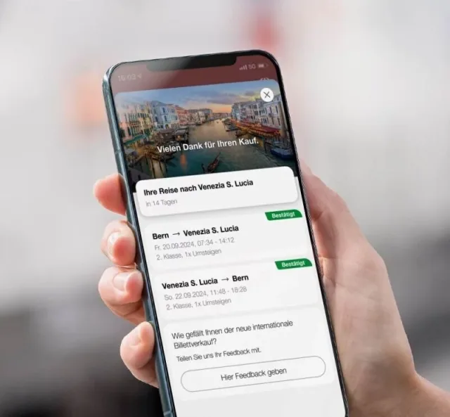 Ab sofort sind internationale Billette auch auf der neusten Version von SBB Mobile erhältlich. Die neue App-Version (Android 12.32.1 resp. iOS 12.32.0) ist im App Store und Google Play erhältlich und wird gestaffelt ausgerollt. Billette für Nachtzüge sind vorläufig noch nicht über SBB Mobile buchbar. Diese können jedoch weiterhin auf SBB.ch oder im Reisezentrum gekauft werden.
