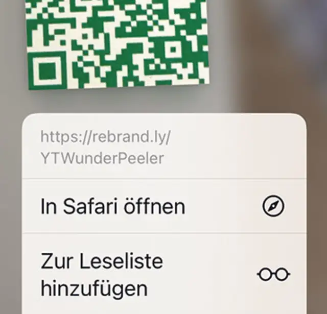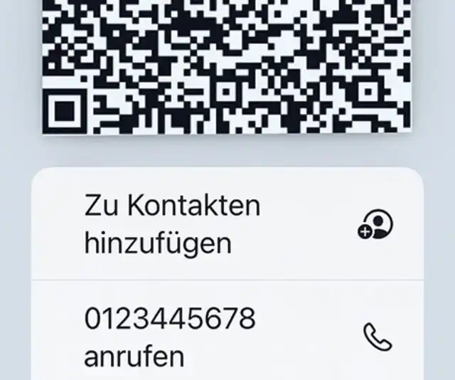 Im einfachsten Fall wird ein QR-Code erkannt, indem Sie ihn auf dem Display etwas länger drücken, bis ein Einblendmenü erscheint, Bild 1. Hier finden Sie oft die Möglichkeit, den QR-Code nicht nur zu erkennen, sondern gleich auch weiterzuverarbeiten – etwa als neuen Kontakt im Adressbuch. QR-Codes werden von iOS automatisch interpretiert. Es kann sich anstelle eines Kontaktes also auch um eine Internetadresse, einen Text oder eine eSIM handeln, um nur drei Beispiele zu nennen. Je nachdem ändern sich die Befehle im Kontextmenü – oder es wird gleich die Webadresse angezeigt.