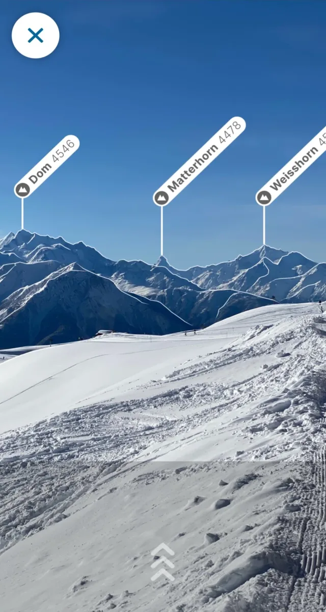 Mit der App können Sie in einer klassischen Kartenansicht Touren planen und aufzeichnen. Nebst der Tourenplanung gibt es noch etliche nützliche Zusatzinformationen und Hintergrundinfos. Dabei werden ebenfalls die Themen «Velofahren», «Schneesport» und «Aviatik» abgedeckt. Inzwischen bietet Swisstopo zusätzlich interaktive Features, etwa Augmented-Reality-Funktionen. So können Sie beispielsweise mit der Handykamera Berge scannen, Bild 3. Die App zeigt daraufhin direkt auf dem Bildschirm an, wie der entsprechende Berg heisst.