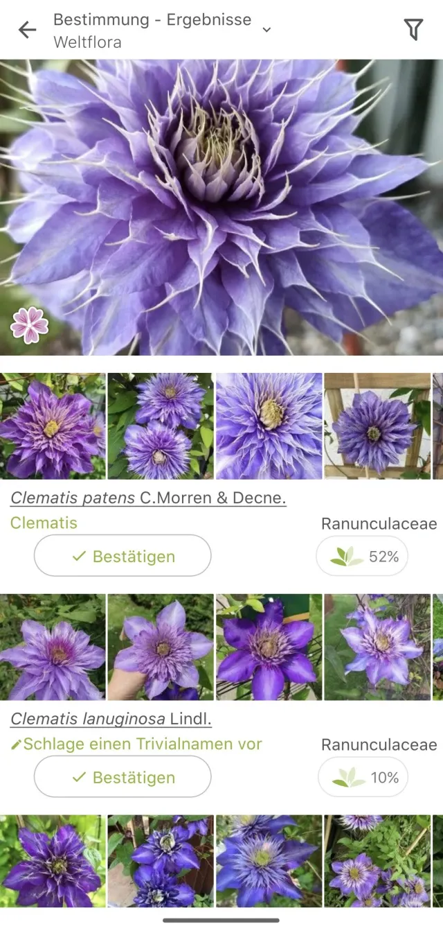 Die App zeigt den lateinischen Namen an und den Deutschen, wenn einer Verfügbar ist. Ausserdem sehen Sie anhand einer Prozentanzeige, wie wahrscheinlich die Übereinstimmung ist. Das ist vor allem hilfreich, da es manchmal mehrere Treffer geben kann.
