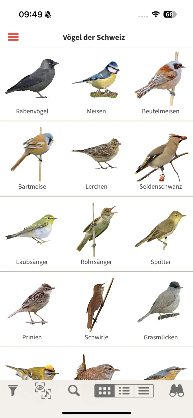 In den Bergen begegnet man oft einer spannenden Tierwelt. Dazu gehören natürlich auch Vögel. Wenn Sie genauer wissen möchten, mit welchem gefiederten Weggefährten Sie es zu tun haben, hilft der «Vogelführer Birdlife Schweiz» weiter. Mit der App der Tierschutzorganisation BirdLife können Sie Vögel nicht nur visuell, sondern auch anhand Ihres Klangs erkennen, Bild 6. Die App umfasst detaillierte Informationen zu 308 Vögeln, die in der Schweiz vorkommen. Diese enthalten Texte über die Art, Infografiken zum Verbreitungsgebiet, Bilder zum Gelege und Audioclips, wie der Vogel klingt. Ausserdem gibt es zu jedem Vogel ein Videoporträt.