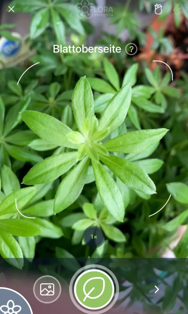 Das gezielte Schärfen funktioniert selbst in Apps wie Flora Incognita, mit der Sie kostenlos Pflanzen fotografieren und dabei bestimmen. Bei Nahaufnahmen etwa einer Blüte oder von Blättern kann Flora Incognita aber manchmal partout nicht scharf stellen. Tippen Sie auch hier auf dem Bild auf die Stelle, die Sie scharf haben wollen und lösen Sie erst danach die Aufnahme aus, Bild 7.