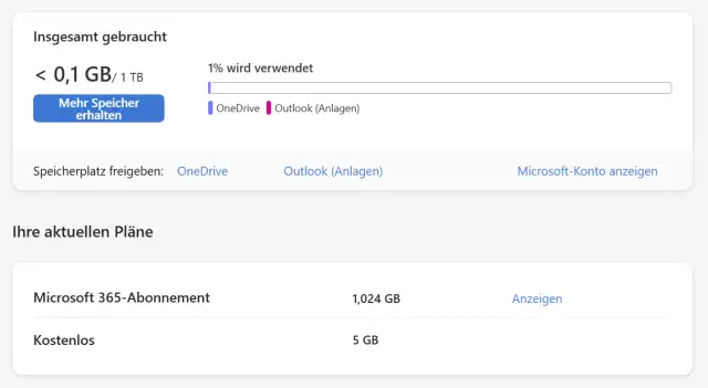 Als Cloud-Speicher bietet sich OneDrive von Microsoft an. Viele Privatnutzer haben bereits ein Abonnement der Office-Lösung Microsoft 365, bei der jeder Anwender ein Kontingent von 1 TB Speicherplatz in der Cloud erhält, Bild 5.