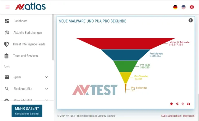 Es kann sein, dass die Schutz-Software vor der Aktualisierung den Angreifer nicht erkannte – aber nach einem Update schon. In diesem Fall wurden Sie von einer 0-Day-Malware attackiert – also eine schädliche Software, die ganz neu im Netz unterwegs ist und im schlechtesten Fall mit Stunden oder sogar Tagen Verzögerung erst erkannt wird. Ist das der Fall, haben Sie nicht speziell viel Pech gehabt: Etwa alle vier Sekunden taucht im Internet eine neue Schad-Software auf (siehe av-atlas.org/de), Bild 3.