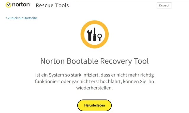 - Norton Bootable Recovery Tool (825 MB) unter norton.com/nbrt