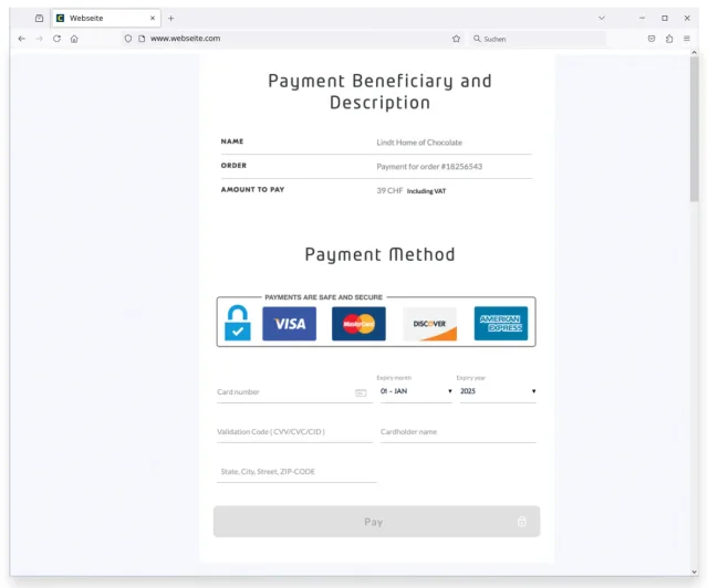 Screenshot Bezahlseite