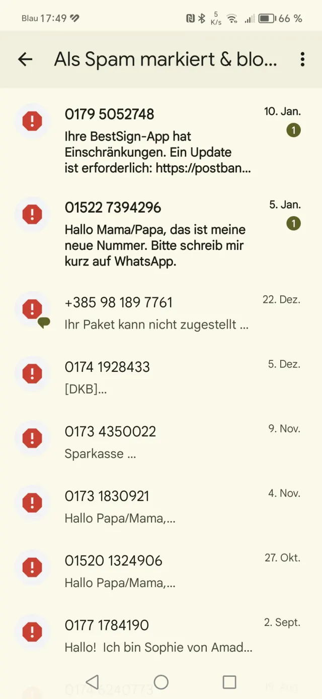Viele Anwender bekommen die Attacken manchmal gar nicht mit. Denn je nach Mobilfunkanbieter und Smartphone-Hersteller werden die Phishing-SMS gleich gefiltert und als Spam ausgeblendet und abgelegt.