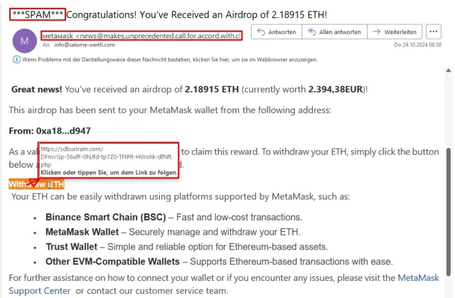 ● Sprache, Schreibstil und -Fehler verraten immer noch Spammails. Durch den KI-Einsatz sind inzwischen allerdings viele perfekte Exemplare unterwegs. Daher ist das Aussehen ein verschwindendes Kriterium.