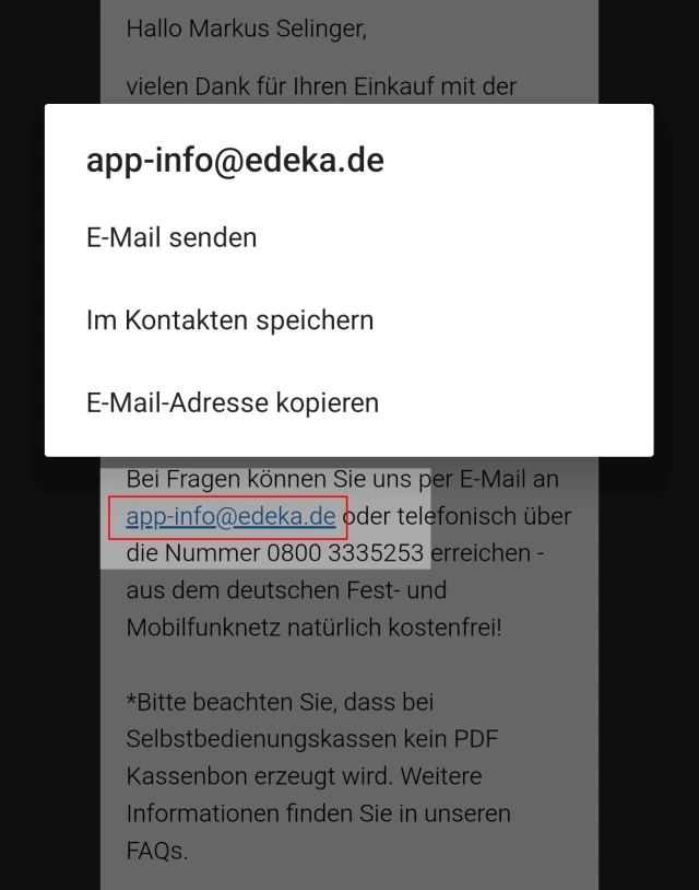Linkcheck bei Android-Geräten: Wenn Sie unter Android oder iOS in einer E-Mail den Link prüfen wollen, tippen Sie den Link nicht nur an, sondern lassen Sie den Finger darauf. Dadurch öffnet sich ein Infofenster, wohin der Link Sie führen will, Bild 5.