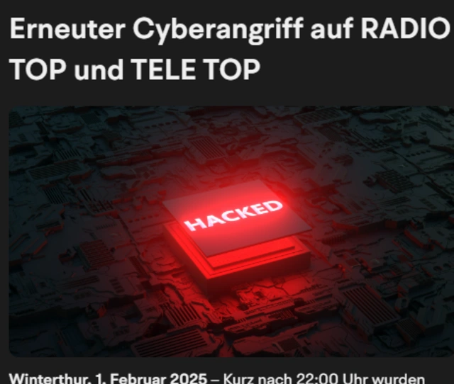 Kurz nach 22:00 Uhr wurden Radio Top und Tele Top erneut Opfer eines Cyberangriffs durch einen Verschlüsselungstrojaner, wie die Top-Medien am Sonntag auf ihrer Internetseite bekannt gaben. Während die Systeme oberflächlich weiterhin liefen, seien derzeit keine Produktionen oder Livesendungen möglich, hiess es.