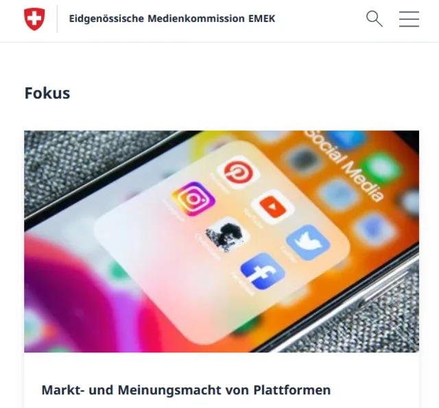 Die Emek rät in einem am Dienstag den Medien in Bern präsentierten Positionspapier zu einer ganzheitlichen Strategie für die Steuerung und Regelung von Online-Plattformen. Angesprochen sind etwa Google, Instagram und Tiktok, aber auch Nachrichtenaggregatoren wie MSN.