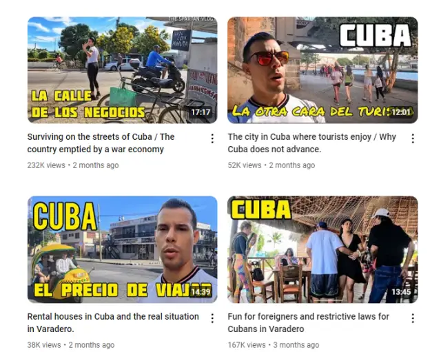 Auch Solís macht viele Videos, die visuell aus Rundgängen oder -fahrten durch Havannas Strassen bestehen, mit einem Voiceover, in dem sie von aktuellen Themen auf Kuba erzählt. Ihr beliebtestes Video besteht aus Tipps für Kuba-Besucher. Sie hat inzwischen auch einen zweiten Kanal: ein Video-Tagebuch, in dem sie etwa zeigt, wie sie Pakete mit Spenden öffnet, die Zuschauer ihr aus dem Ausland schicken - vor allem Lebensmittel, mit denen Solís vier bedürftige Familien in ihrer Nachbarschaft unterstützt.