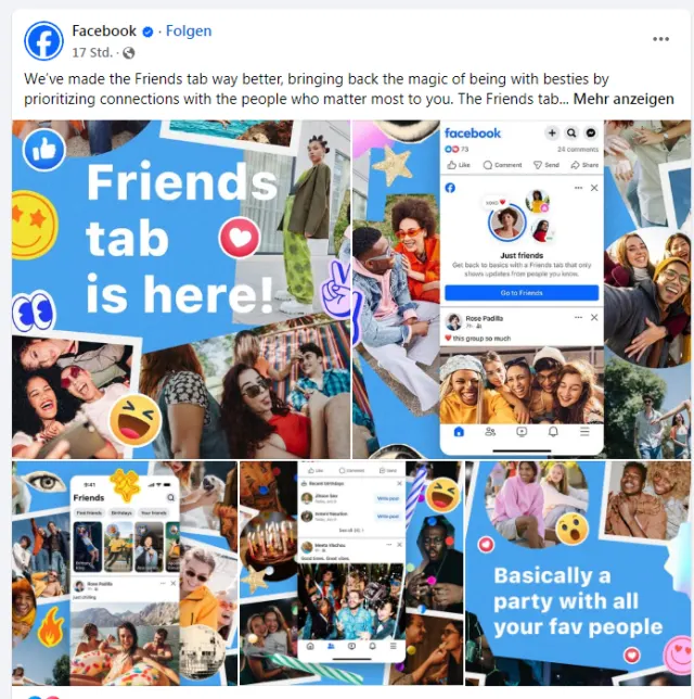 Dabei solle es im zentralen Feed auch bleiben, sagte Meta-Manager Tom Alison der «New York Times». Der Konzern rechne nicht damit, dass der Freunde-Tab zum populärsten Bereich der App werde.