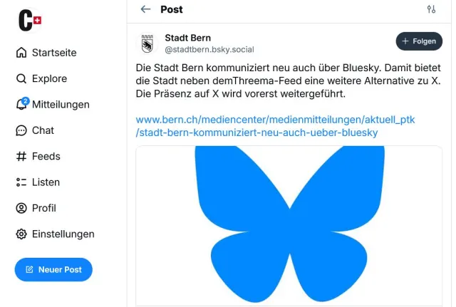Stadt Bern kommuniziert auch über "Bluesky"
