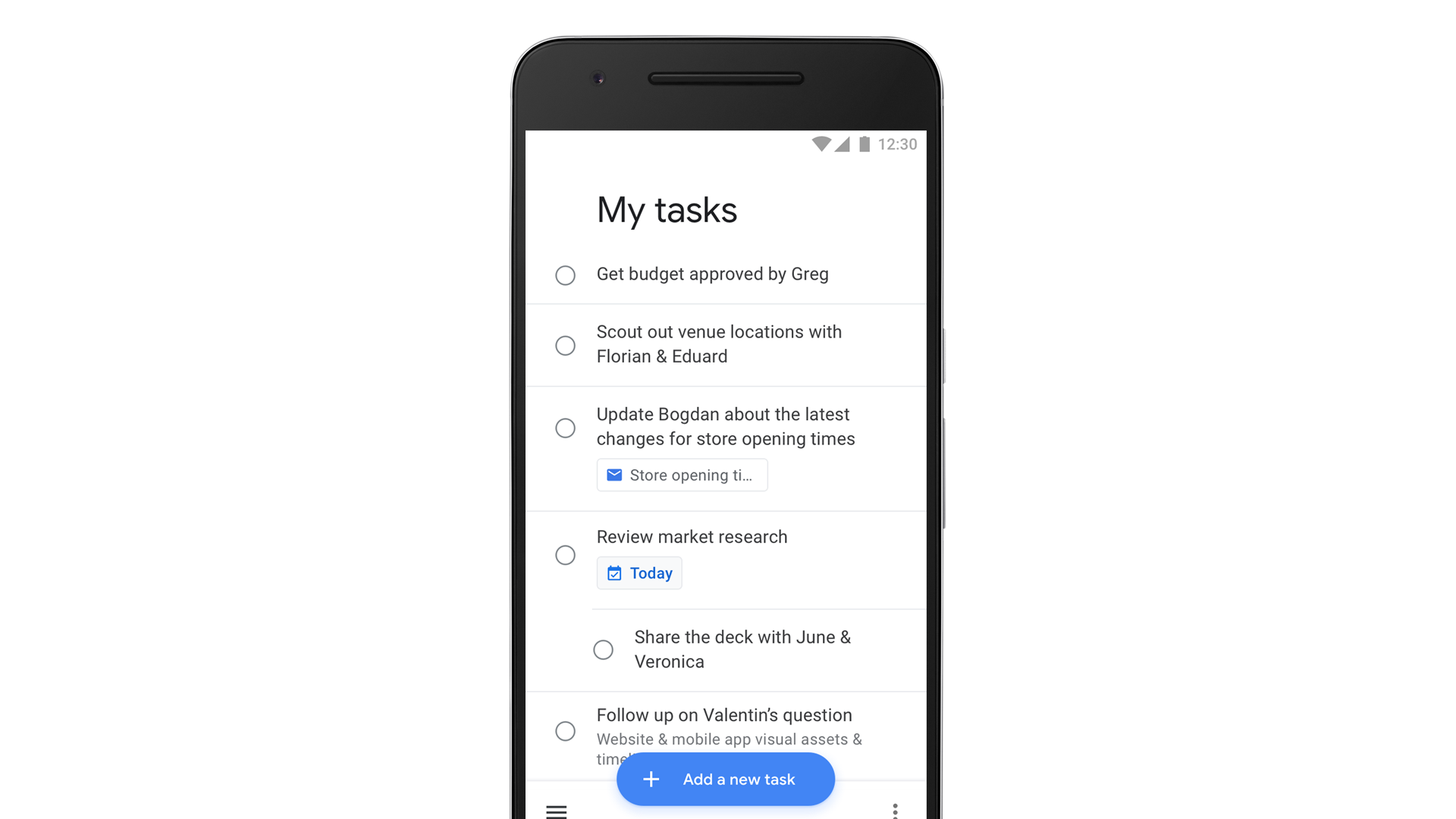 Zusätzlich zum überarbeiteten Mail-Dienst launcht Google einen neuen Aufgabenplaner. Dieser kann entweder im Browser oder als App auf dem Smartphone verwendet werden. Die Funktionalität der App ist grundsätzlich ziemlich überschaubar. Damit lassen sich Aufgaben und Unteraufgaben erstellen, die mit einem Fälligkeitsdaten und Benachrichtigungen versehen werden können.