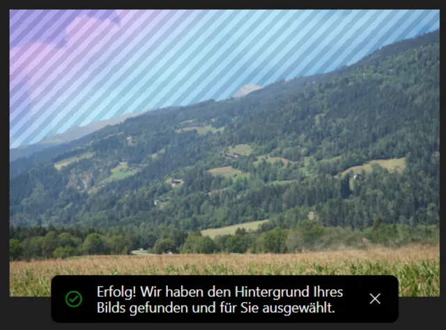 Öffnen Sie das Bild im Bearbeitungsmodus. Wählen Sie in der Werkzeugleiste die Registerkarte Hintergrund, Bild 11. Die KI sucht indessen automatisch den Hintergrund Ihres Bildes und markiert diesen mit einem gestreiften Muster, Bild 12.