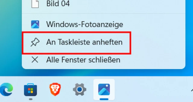 Möchten Sie die App in der Taskleiste behalten, klicken Sie per Rechtsklick auf die Taskbar des Programms und wählen An Taskleiste anheften, Bild 2.