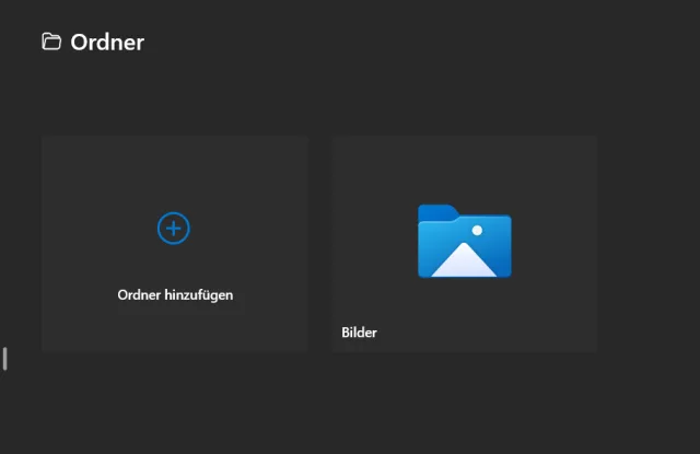 Klicken Sie dazu links auf den Menüpunkt Ordner. Es öffnet sich die Übersicht, aller Ordner, die für die Anzeige von Bildern berücksichtigt werden, Bild 3. Klicken Sie dort auf Ordner hinzufügen und wählen Sie Ihren gewünschten Ordner aus.