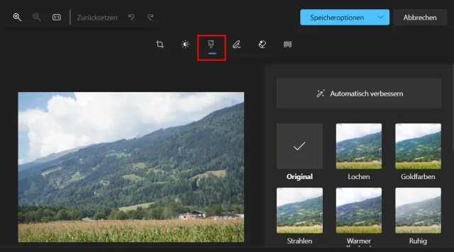 Gehen Sie danach zur Option Filter und wählen Sie im rechten Fensterbereich den Punkt Automatisch verbessern, Bild 7.