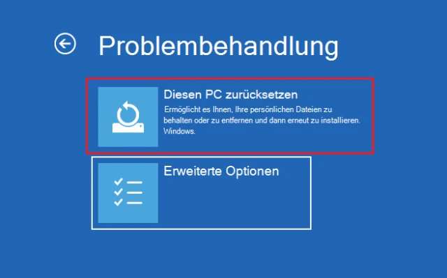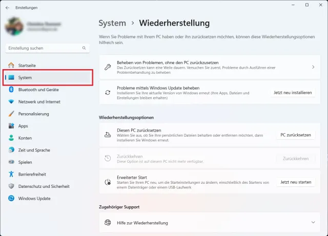 Wenn Ihr Rechner wie gewohnt startet, aber langsam läuft oder im laufenden Betrieb Fehlermeldungen anzeigt, lässt sich Windows über die Einstellungen zurücksetzen. Falls der Rechner nicht mehr sauber hochfährt oder gar nicht startet, ist der Weg der Wahl die Wiederherstellung während des Bootvorgangs (siehe Punkt 2).