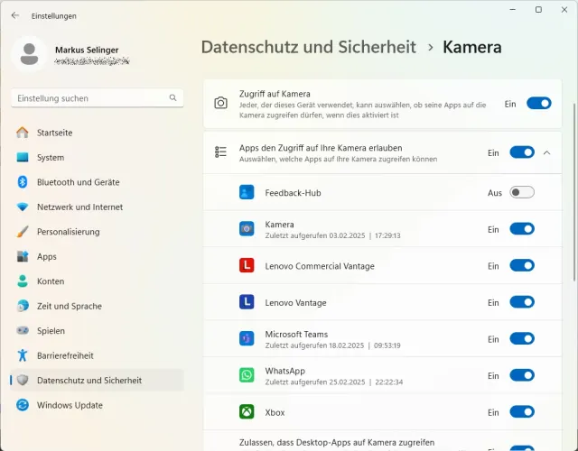Viele Anwender kennen diese Funktion eher von Android-Handys: Welche App hat welche Berechtigungen für den Zugriff auf Mikrofon, Kamera und mehr? Auch unter Windows 10 und 11 können Sie das prüfen und bei Bedarf ändern. Am schnellsten kommen Sie zur Übersicht mit den Tasten Windowstaste+I und Datenschutz respektive Datenschutz und Sicherheit. In der Leiste sehen Sie eine Übersicht aller Geräte. Unter Aktivitätsverlauf speichert Windows alles, was Sie am PC gemacht haben. Dort können Sie den Verlauf abschalten und löschen, wenn Sie möchten.