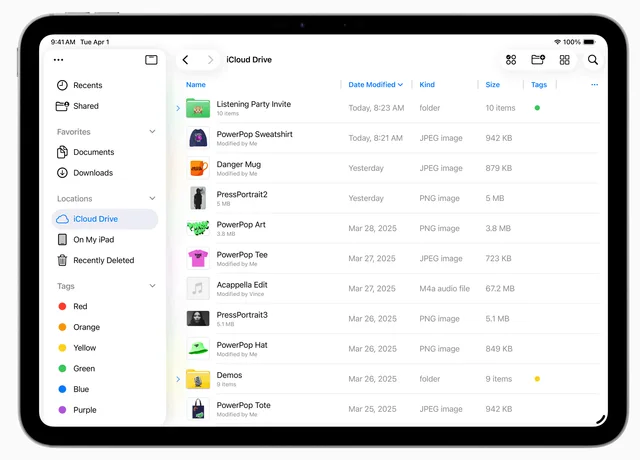 Ein weiterer, lauter Kritikpunkt wurde angegangen: das Datei-Management, das anspruchsvollen Anwendern regelmässig die Laune eintrübt. Die neue «Dateien»-App bietet eine neue Listenübersicht, die neben den Dateinamen auch weitere Dateieigenschaften anzeigen kann – ganz so, wie man es vom Finder her kennt. Da Ordner jetzt genau wie am Mac  farblich markiert werden können, werden auch diese Merkmale über iCloud synchronisiert. Zusätzlich werden auf dem iPad auf Wunsch standardmässig in einer bestimmten App geöffnet, also zum Beispiel ein PDF in der App «PDF Expert».