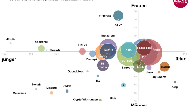 40 Prozent der Schweizer Bevölkerung nutzen KI-Tools wie ChatGPT. Bei den Jugendlichen ist diese Nutzung schon fast selbstverständlich, während ältere Personen KI-Tools vergleichsweise selten anwenden. TV und Audio boomen hingegen über alle Generationen hinweg.