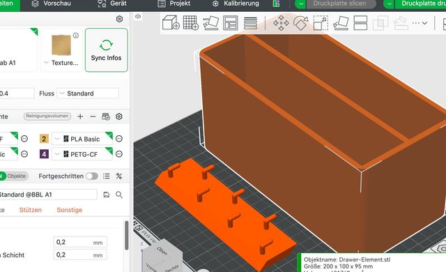 Doch da ist noch viel mehr. Die Slicer-Software schneidet zu grosse Modelle in kleinere Teile, inklusive Öffnungen und Zapfen für das spätere Zusammensetzen. Sie kann den Druck anhalten und fortsetzen, das Filament automatisch austauschen oder mit einem Klick Stützen einbauen, um überhängende Elemente zu ermöglichen. Zudem reduziert sie den Filament-Verbrauch massiv: Wenn etwa eine Box gedruckt wird, bestehen die Wände nicht aus massivem Filament, sondern weisen im Inneren eine Wabenstruktur auf, die nebenbei für eine optimale Stabilität sorgt.