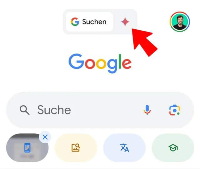 Bisher war der Gemini-Zugriff auf iPhones lediglich über die Google-App möglich. Dort wurde oben rechts ein entsprechender Gemini-Tab angezeigt, Bild 10.