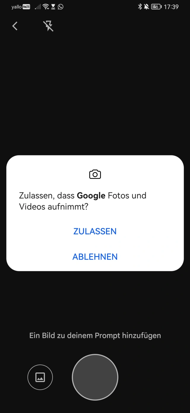 Sie können auch ein Foto mit Ihrem Smartphone aufnehmen und Gemini bitten, es zu analysieren. Das ist unter anderem nützlich, um Pflanzen zu identifizieren. Tippen Sie auf dem Gemini-Bildschirm auf das Kamera-Icon. Falls Sie das zuvor noch nie gemacht haben, müssen Sie die Berechtigung erteilen, dass Gemini die Kamera nutzen darf, Bild 12.