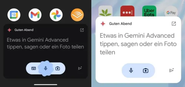 Drücken Sie die Stand-by-Taste einige Sekunden lang, Bild 4. Am unteren Bildschirmrand sollte ein Pop-up-Fenster mit der Eingabemaske für Gemini erscheinen, Bild 5. Durch Tippen auf eine beliebige Stelle ausserhalb des
