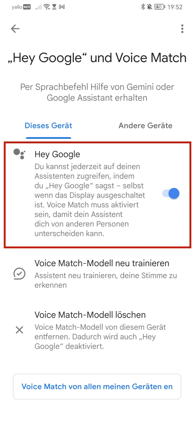 - Tippen Sie auf Hey Google und Voice Match.