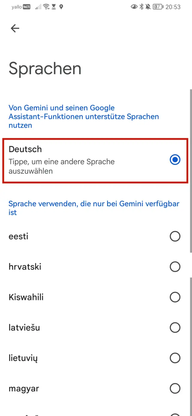 Tipp: Wenn Ihr Handy auf Deutsch eingestellt ist, sollte Gemini auch automatisch Deutsch als Standardsprache nutzen. Falls Gemini bei der ersten Verwendung Englisch mit Ihnen spricht, überprüfen Sie die Spracheinstellungen. Das geht wie folgt:
