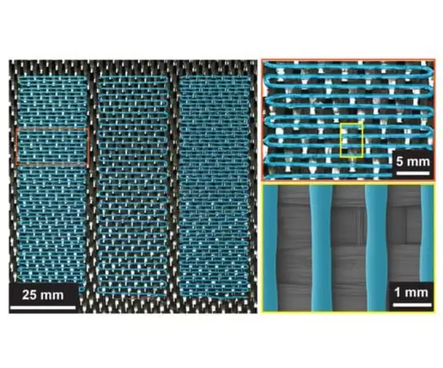 Das neue Material ist genauso aufgebaut wie konventionelle Verbundwerkstoffe. Doch in die Fasern betten die Entwickler feine Drähte ein, die sich aufgrund ihres elektrischen Widerstands erwärmen, wenn ein elektrischer Strom hindurchgeleitet wird. Auf die Fasern tragen die Entwickler zudem per 3D-Druck kleine Mengen an thermoplastischem Kunststoff auf, ehe das Epoxidharz sie umhüllt.