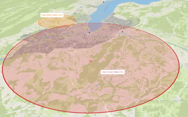 Der FCC soll in der Mitte der 2040er-Jahre den Large Hadron Collider (LHC), den bisherigen Teilchenbeschleuniger in Genf, ablösen. Er würde den LHC, den aktuell stärksten Teilchenbeschleuniger der Welt, in den Schatten stellen. In der Machbarkeitsstudie ist laut dem Cern ein 90,7 Kilometer langer, kreisförmiger Beschleuniger als beste Möglichkeit für das Projekt auserkoren worden. Damit wäre der FCC mehr als dreimal so gross wie der LHC.