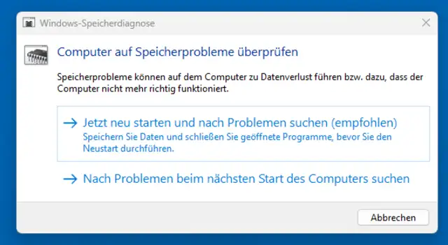 Um den Arbeitsspeicher zu überprüfen, bietet sich hingegen das Windows-eigene Programm «mdsched» an. Sie erreichen es mit der Tastenkombination Windowstaste+R.