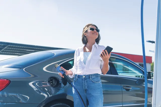 Sowohl Plug-In-Hybridautos als auch vollelektrische Autos lassen sich entweder aneiner 230-Volt-Haushaltsteckdose oder via 400-Volt-Starkstromanschluss aufladen, womit sich die Ladezeit der Hochvoltbatterie um rund 50 Prozent reduzieren lässt. Alternativ können Sie zu Hause eine Ladestation/Powerwall installieren oder Sie greifen auf öffentliche E-Ladestationen zurück. Beim Einsatzeiner klassischen Haussteckdose können bei vollelekrischen Autos 12 bis 24 Stunden vergehen, bis eine Vollbetankung erreicht ist. Schneller geht es mit dem erwähnten Starkstromanschluss, der das innert 4 bis 10 Stunden schafft. Öffentliche Schnellladesäulen mit Gleichstrom (Direct Current = DC) schaffen eine «Betankung» von E-Autos auf 80 Prozent in 20 bis 40 Minuten, Bild 7.