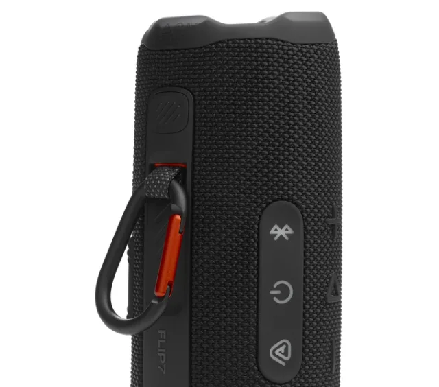 Beim Flip 7 handelt es sich um den neuen, mobilen Bluetooth-Lautsprecher des Soundspezialisten JBL. Der kompakte Speaker wechselt für einen Strassenpreis von Fr. 149.95 seinen Besitzer und unterstützt, als Neuerung, Bluetooth in Version 5.4 sowie auch Auracast. Der Clou: Via Auracast-Funktion lässt sich der Flip 7 mit anderen entsprechend kompatiblen Lautsprechern koppeln und so eine grössere Fläche/Räume mit mehreren solchen Lautsprechern beschallt. Nützlich: Mit dem PushLock-System (zum Festhaken und Aufhängen des Flip 7) bietet die Box verschiedene Befestigungsarten, die sich per Klick leicht wechseln lassen. Konkret handelt es sich beim mitgelieferten Zubehör wahlweise um einen Handgelenkriemen oder Karabiner, der direkt auf Knopfdruck am Flip 7 arretiert wird. Selbst die verlustfreie, kabelgebundene Übertragung von Audioinhalten ist möglich - und zwar über den seitlichen USB-Port (Typ-C-Variante). Tipp: Im Anschluss finden Sie ein kurzes Video, das zeigt, wie man JBL Flip 6 mit der Charge-6-Variante des Herstellers via Auracast-Button koppelt.