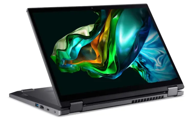 Unglaublich produktiv: Gerade mal 1,6 kg schwer, dafür aber 14 Zoll (Bilddiagonale: 35,6 Zentimeter) gross und mit einer gemessenen Akkulaufzeit von 10:47 Stunden mit sprichwörtlich viel Stehvermögen ausgestattet: Acers aktuelles Aspire 5 Spin 14 ist ein aufs Arbeiten ausgelegtes Convertible. Und zwar fürs Homeoffice bis hin als Business-Begleiter. Das Display des 2-in-1-Notebooks mit Windows 11 Home als Betriebssystem lässt sich nicht nur komplett nach hinten in den Tablet-Modus klappen. Im sogenannten Dachmodus aufgestellt, dient es dann auch als Präsentationswerkzeug. Der Bildinhalt wird dem Gegenüber selbstverständlich korrekt angezeigt.
