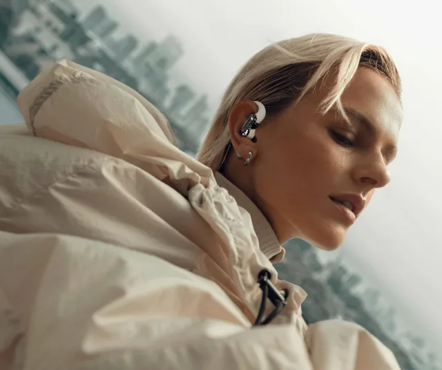 Die Ohrhörer werden anders als In-Ears nicht ins Ohr gesteckt, sondern nur ums Ohr gewickelt und sitzen danach wie kleine Lautsprecher direkt vor dem Hörgang. Der Vorteil: Dadurch lassen sich Umgebungsgeräusche besser und natürlicher wahrnehmen. Der Nachteil: Das Sounderlebnis ist weniger intim und immersiv. Zudem können andere die Musik hören – auch wenn Nothing mit spezieller Technik die Klänge nach aussen vermindert.