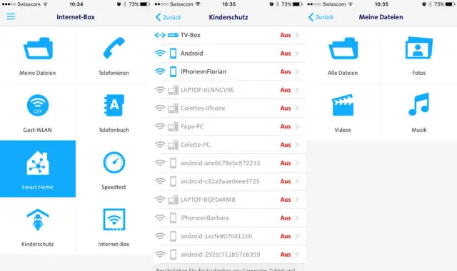 Dem Anspruch, für eine ganzheitliche Vernetzung sorgen zu wollen, kommt der Schweizer Branchenprimus nach: So fungiert die Internetbox 2 auf Wunsch als NAS. Wird über USB eine externe Festplatte oder ein Stick angeschlossen, kann von jedem im (W)LAN befindlichen Gerät auf die Daten zugegriffen werden. Dank der App ist auch ein Zugriff von ausserhalb, z.B. mit dem Smartphone oder dem Tablet, möglich. Hier machten wir allerdings die Erfahrung, dass die Geschwindigkeit des Datentransfers nicht ganz an jene eines klassischen NAS-Servers herankommt. Auch das Streamen von Filmen auf mobile, nicht im (W)LAN befindliche Geräte brauchte zu Beginn einen Moment fürs Buffering.