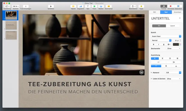 Keynote. Die Präsentationssoftware Keynote ist das Mittel der Wahl, um die Zuschauer zum Staunen zu bringen. Dabei helfen nicht nur die vielen Vorlagen, sondern auch die aufwendigen, aber stilsicheren Effekte und Animationen.