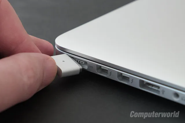 Zu den Alleinstellungsmerkmalen der MacBooks gehört auch der MagSafe-Anschluss. Er hält das Netzkabel sicher in der Buchse, löst sich bei Zug aber sofort mit einem sanften Klicken vom Gerät. Allein diese Eigenschaft dürfte schon unzählige MacBooks vor dem Todessturz gerettet haben, wenn Haustiere, Mitbewohner oder Mitreisende in die Stolperfalle getappt sind.